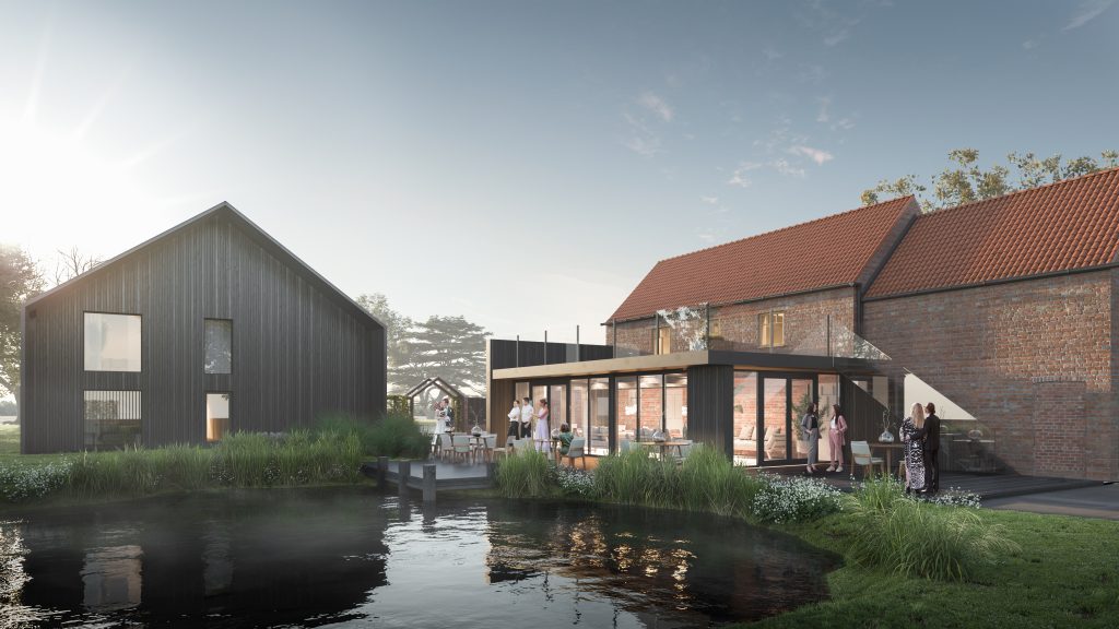 The design thoughtfully considered both the functional needs of the venue and the aesthetic relationship between the new build and the listed farmhouse, ensuring that each element contributed to a cohesive and visually compelling environment. Through this careful balance of contemporary design and respect for the heritage context, the project not only enhances the venue’s offerings but also preserves and celebrates the historical significance of the site.